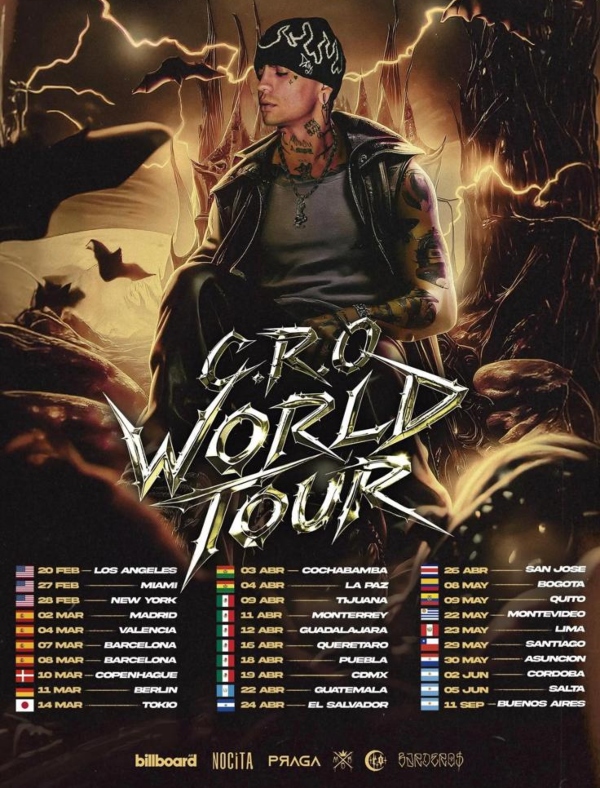 CRO anuncia su esperada gira mundial, un espectáculo que recorre su evolución artística y su inconfundible sonido. Con una puesta en escena cuidada al detalle, el artista alemán llevará al escenario sus mayores éxitos y las nuevas canciones que marcan esta etapa de su carrera. Una experiencia única donde se mezclan energía, emoción y estilo, pensada para fans de todo el mundo. No es solo un concierto: es un viaje por el universo CRO.